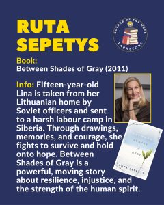 Fifteen-year-old Lina is taken from her Lithuanian home by Soviet officers and sent to a harsh labour camp in Siberia. Through drawings, memories, and courage, she fights to survive and hold onto hope. Between Shades of Gray is a powerful, moving story about resilience, injustice, and the strength of the human spirit.