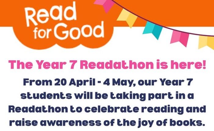 From 20 April – 4 May, our Year 7 students will be taking part in a Readathon to celebrate reading and raise awareness of the joy of books.