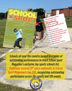 Schools nationwide delivered outstanding performances to reach School Sport Magazine’s exclusive Top 200 Sports Schools list. Parkstone secured 19th place nationally, recognising exceptional success across 20+ sports and 120 competitions. The rankings prioritise achievement across a wide range of sports, particularly those with high participation.