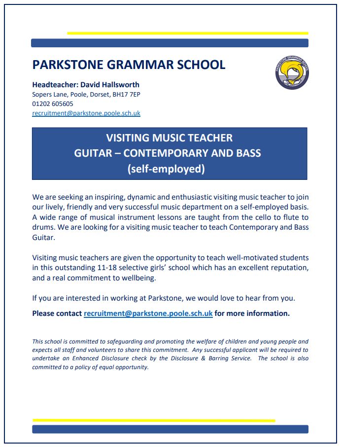 If you have any queries or would like further information about Parkstone Grammar School or the advertised role, please email recruitment@parkstone.poole.sch.uk